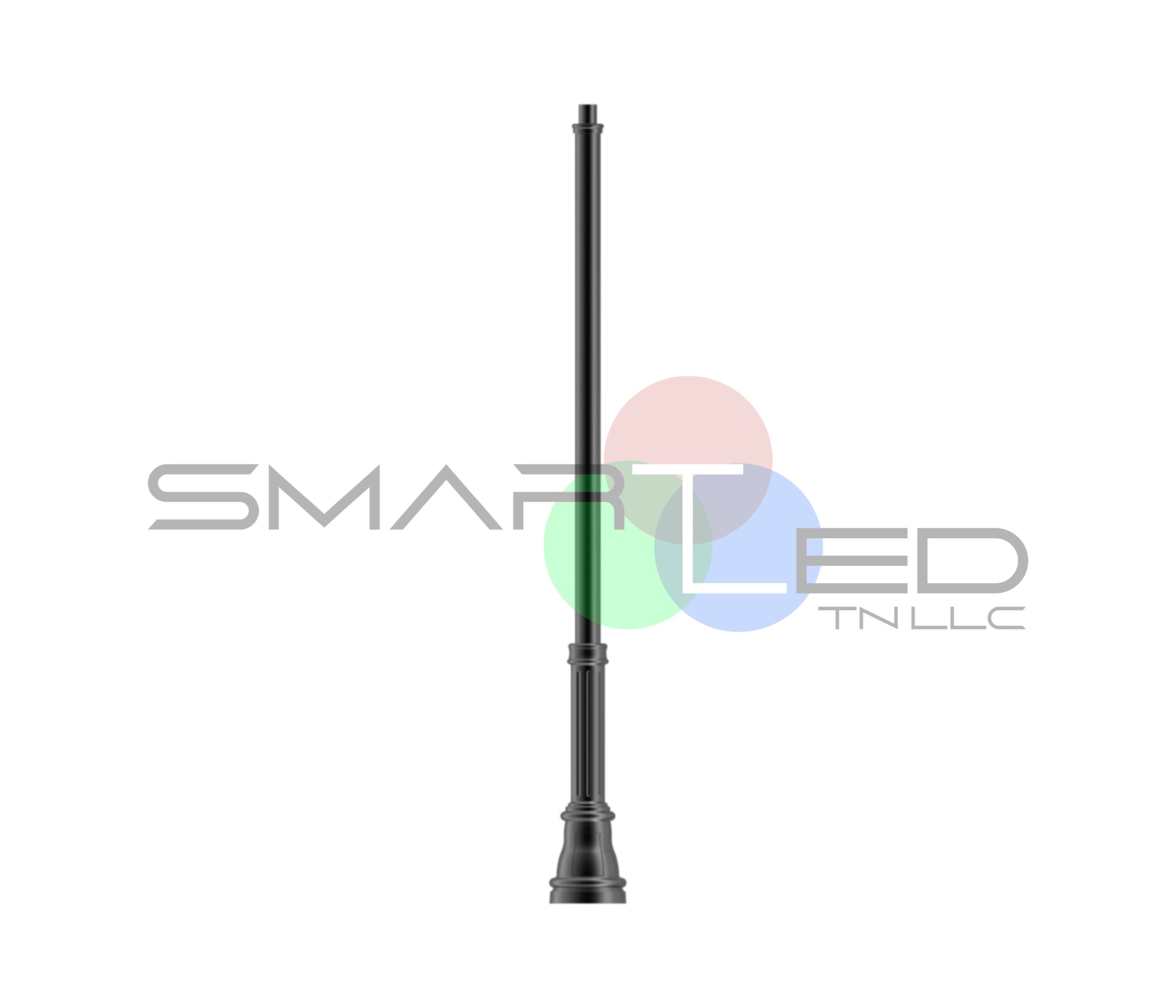 - Extruded aluminum shaft welded to a decorative cast aluminum base